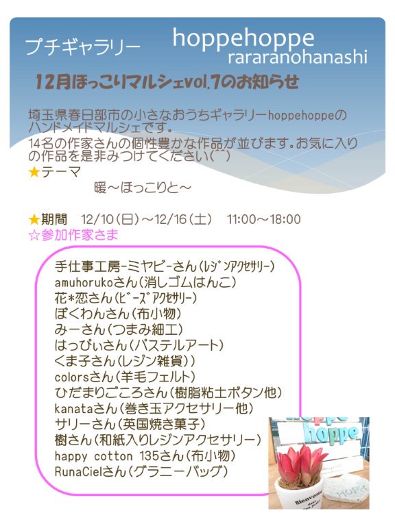 ☆12/10〜16 ほっこりマルシェ(埼玉・春日部)食品出店